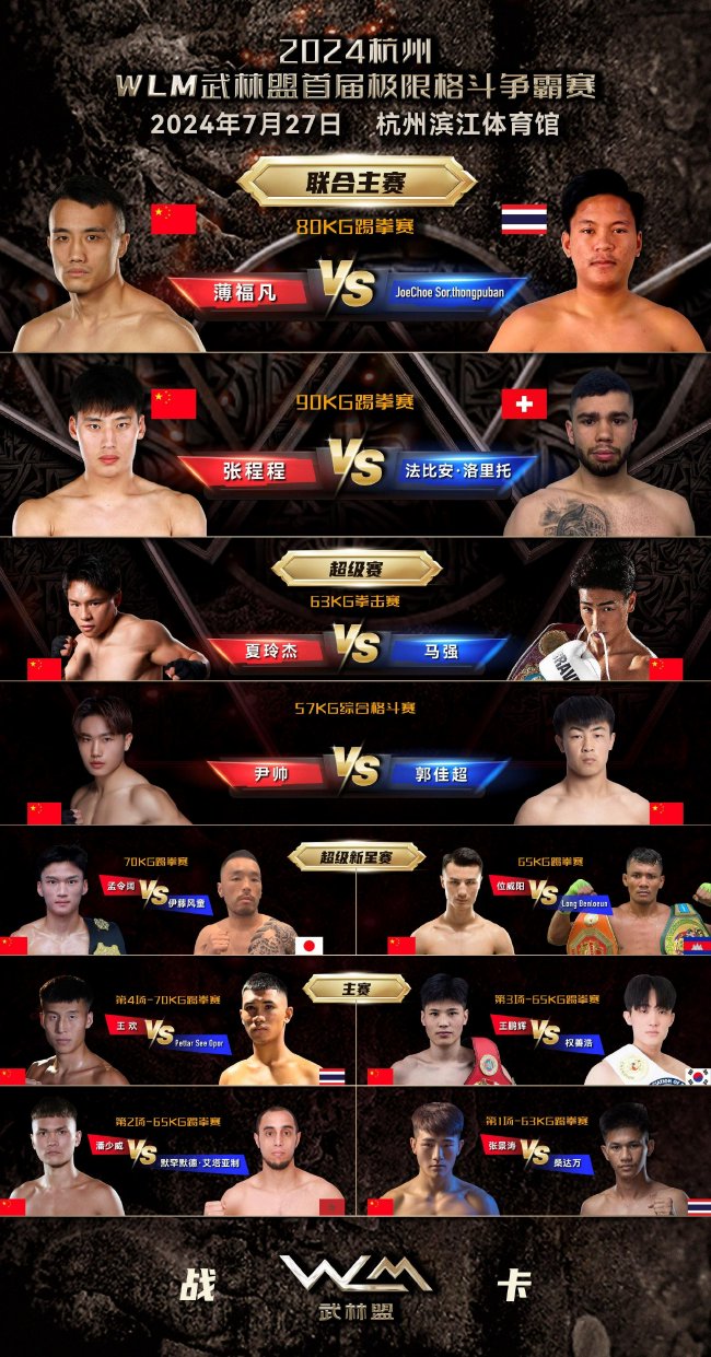 香港時間7月27日,2024WLM武林盟極限格鬥爭霸賽將在杭州濱江體育館震撼開打,比賽集結了來自7個國家的諸多格鬥好手,陣容強大,看點十足!