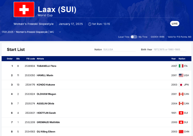 2025自由式滑雪坡面障礙技巧世界盃萊克斯站於當地時間1月14-17日在瑞士萊克斯滑雪渡假區舉行。在14日進行的女子資格賽上,時隔1年再次參加坡面障礙世界盃的谷愛淩,在腳傷出血的情況下,以78.20分排名第一,晉級決賽。