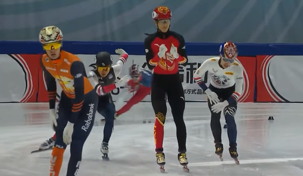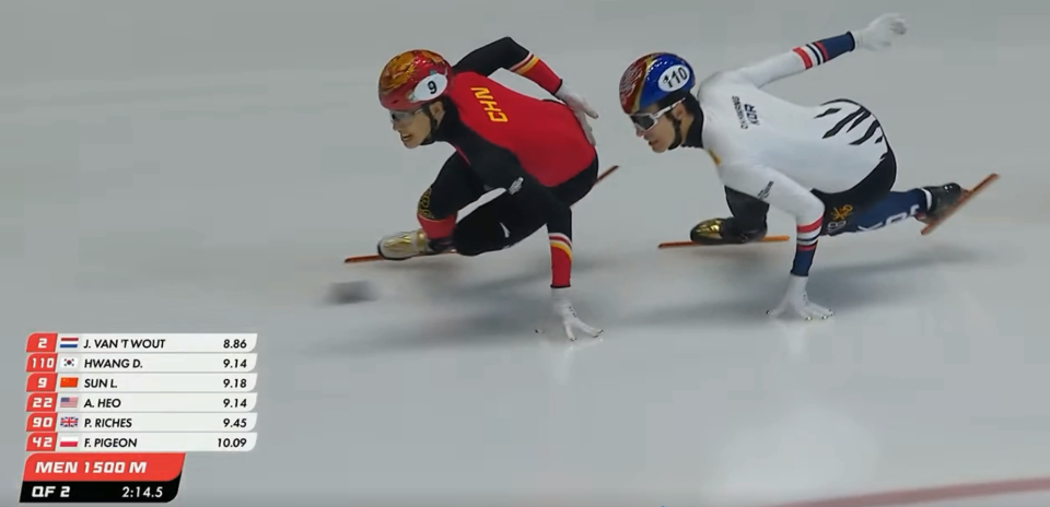 最後一個彎道前孫龍成功超越北京冬奧冠軍