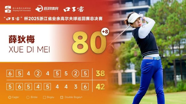 薛狄梅在4號洞和6號洞分別抓鳥,交出80杆。此前她代表浙高協企業家隊參賽獲得中巡杯冠軍,她說:「唱名出發讓我感覺又回到了中巡賽賽場,很有職業氛圍。」