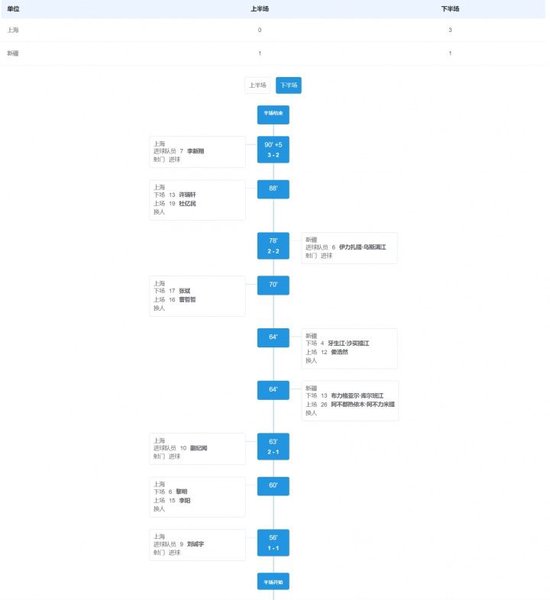 香港時間11月08日訊 全運男足U20 8強,上海U20 3-2新疆U20晉級4強,將會在準決賽對陣廣東U20。今場比賽,劉誠宇(56‘)、蒯紀聞(63’)、李新翔(95‘)為上海U20入球。