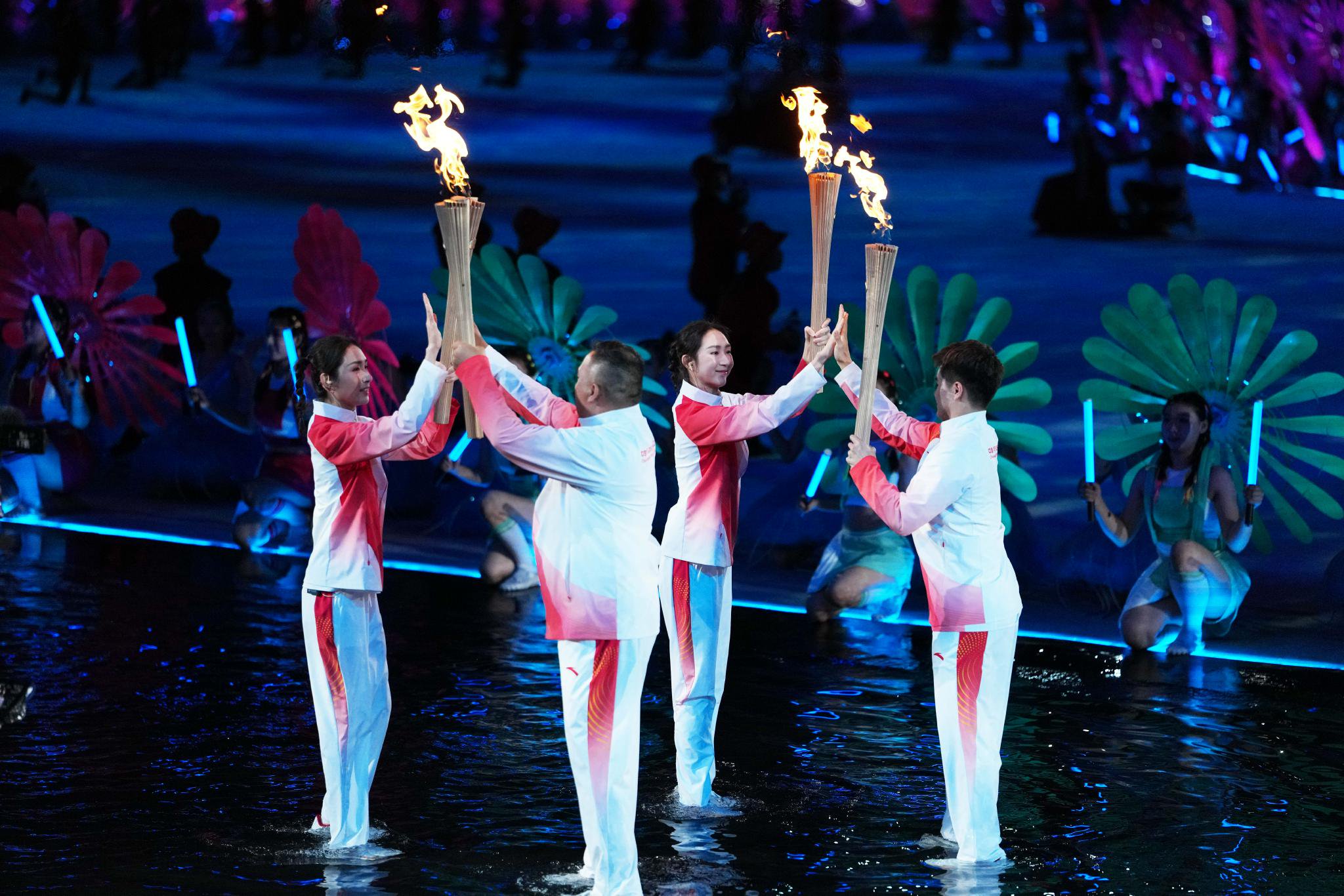 在開幕禮主火炬點燃儀式上,「全國道德模範」賴宣治是唯一非運動員火炬手。雖然他不是運動員,卻培養出52位跳繩世界冠軍。他首創「無影腳」跳繩法,帶領學生打破13項世界紀錄,推動跳繩成為全民健身潮流。