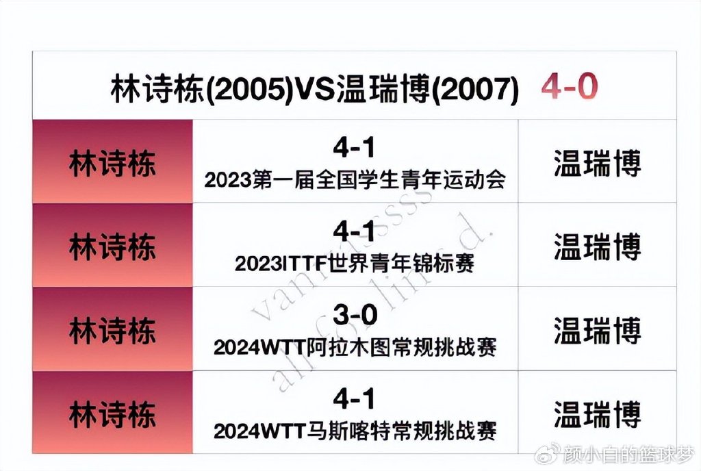 林詩棟VS溫瑞博4勝0負;