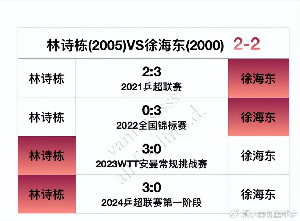 林詩棟VS徐海東2勝2負。