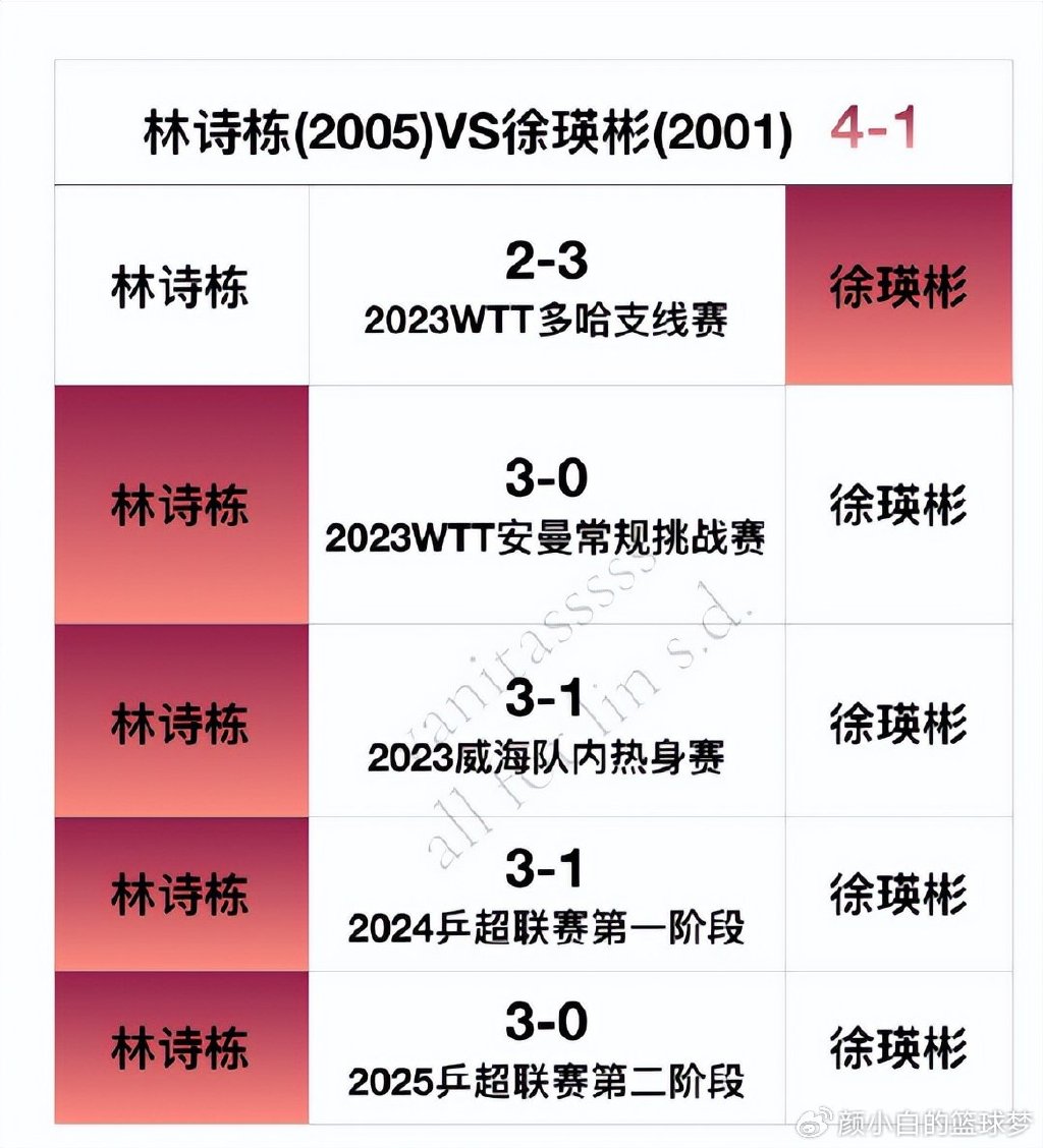 林詩棟VS徐瑛彬4勝1負;