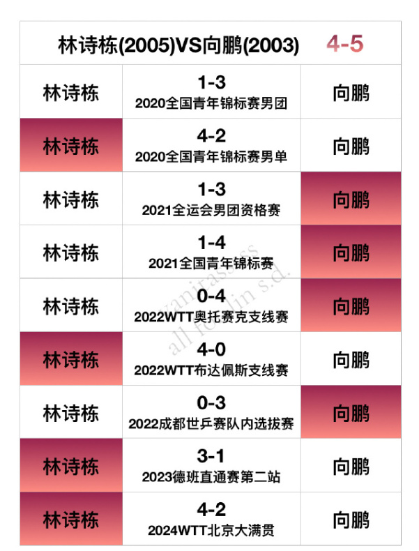 林詩棟VS向鵬4勝5負;
