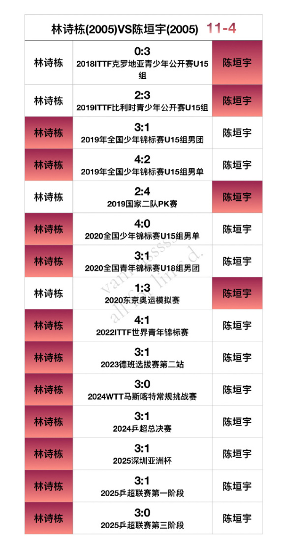 林詩棟VS陳垣宇11勝4負;