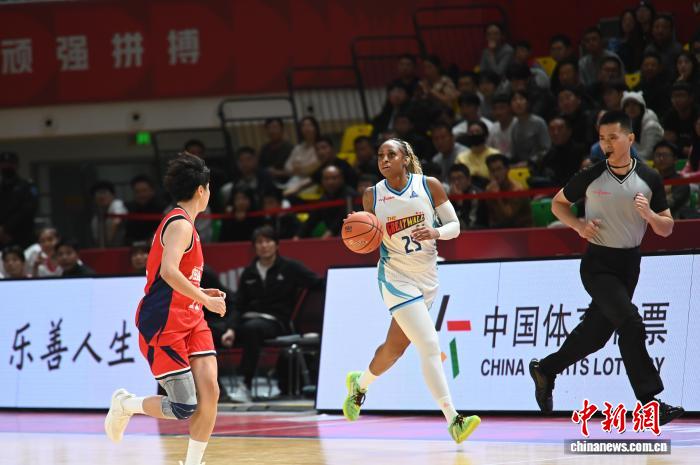 2025-2026賽季中國女子籃球聯賽(WCBA)常規賽第三輪的比賽8日晚間進行,陝西榆林天澤女籃在主場69:88不敵客隊北京女籃。至此,今季前三輪比賽,陝西女籃仍未嚐勝績。圖為北京隊(白衣)外援米曹持球進攻。何嵩 攝