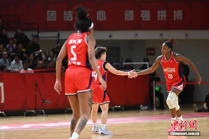 2025-2026賽季中國女子籃球聯賽(WCBA)常規賽第三輪的比賽8日晚間進行,陝西榆林天澤女籃在主場69:88不敵客隊北京女籃。至此,今季前三輪比賽,陝西女籃仍未嚐勝績。圖為陝西女籃隊員場上互相鼓勵。何嵩 攝