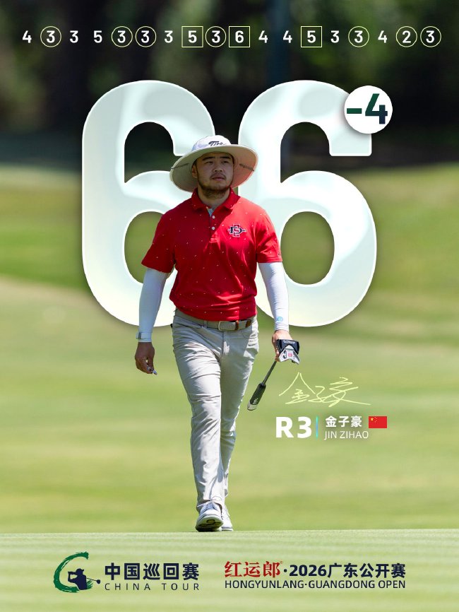香港時間3月14日,紅運郎·2026廣東公開賽在華美麓湖高爾夫球會結束移動日的爭奪。中國球員金子豪則憑藉穩健的66杆(-4),以三輪-8的總成績,成功登頂領先榜。彭博交出68杆(-2)的成績獨居第二。英格蘭球手Matt KILLEN 交出70杆的成績位列第三。25賽季最佳新秀柴博文上演驚天逆襲,單輪狂抓8鳥,交出石破天驚的62杆(-8),一舉刷新本週單輪最低杆數紀錄,從晉級區邊緣飆升至並列第四位。