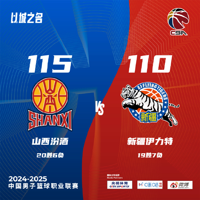 香港時間1月5日消息,2024-2025賽季CBA常規賽第27輪,山西男籃115-110逆轉新疆男籃。