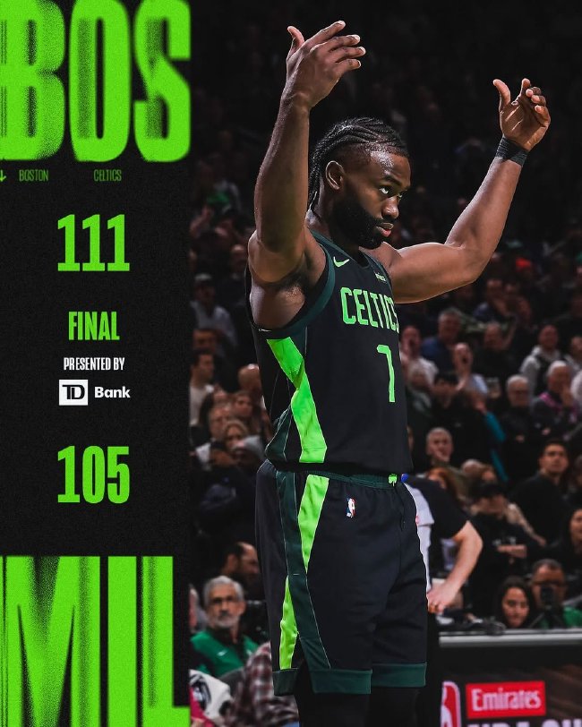 些路迪(19-4):塔圖姆34分10籃板5助攻、杰倫-布朗25分3籃板3助攻、哈勒戴20分5籃板6助攻、豪澤16分3籃板
