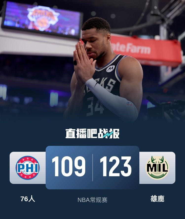 字母哥34+15+6 列拿特25+5 麥斯37+6+7 公鹿送76人6連敗