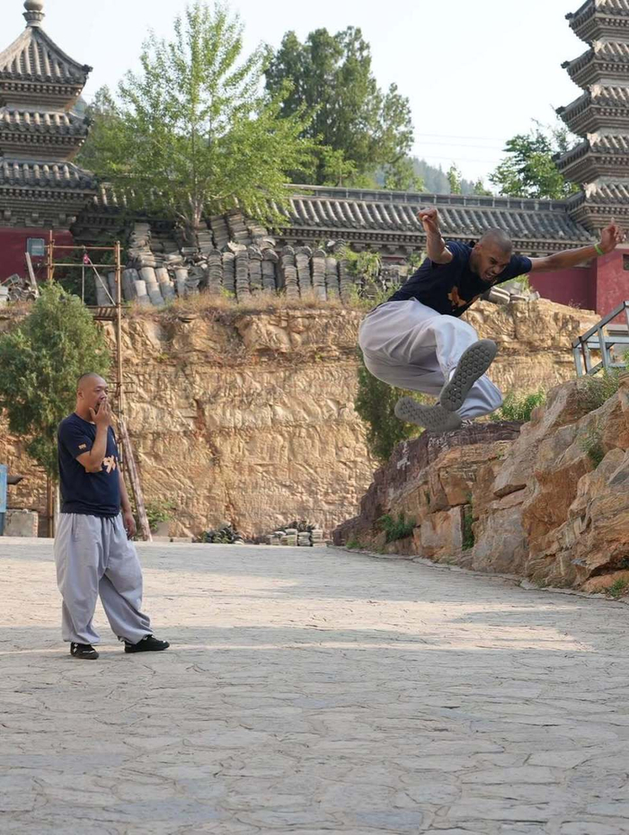 對於文班來說,去中國少林寺靜修是一段重要的經歷。在那裡,他學武修心,在身體和精神狀態上都獲得感悟。他曬出的照片里有一張騰空踢腿的練武畫面。