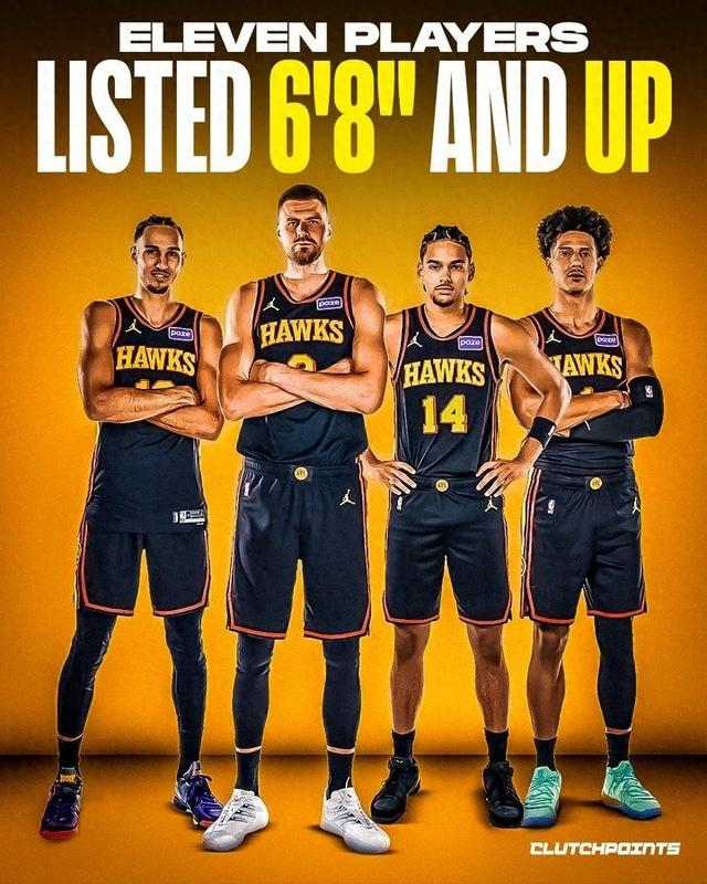 算上雙向合約球員,老鷹全隊共有13名球員超過6尺8寸(約2.03米)!