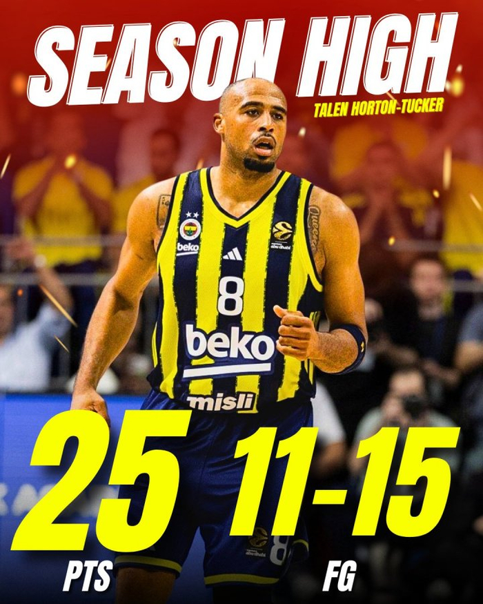 此役,費倫巴治新援、曾隨湖人奪冠的塔倫-霍頓-塔克表現出彩,他僅登場23分鐘15投11中,罰球4中3,砍下25分創個人賽季新高,還有6籃板1助攻1阻攻進賬。