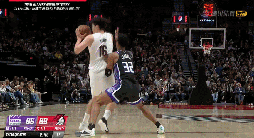 緊跟著再打尤賓士一個,外線持球虛晃背運轉身殺入,整套連招搓的相當絲滑,堪稱今日楊瀚森最佳入球;