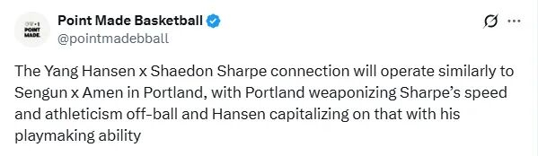 當然,楊瀚森的能力並不僅限於長人射三分。
