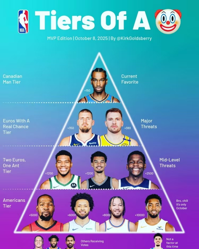 香港時間10月12日,NBA新賽季季前賽已經正式打響了,雖然季前賽更多是練兵,但是從季前賽我們可以看出一些球隊在今季的目標和打法,就現在來看網隊、爵士大概率會繼續重建,而火箭、雷霆目標是衝擊總冠軍,新賽季有多支球隊具備衝冠的實力,因此常規賽MVP的競爭也會更加激烈,接下來我們就來看看美媒給新賽季的MVP熱門分級。