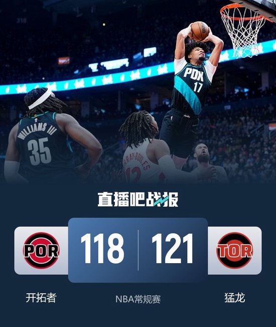 香港時間12月3日訊 NBA常規賽,暴龍主場迎戰拓荒者。兩隊目前都是2連敗,暴龍14勝7負,拓荒者8勝12負。