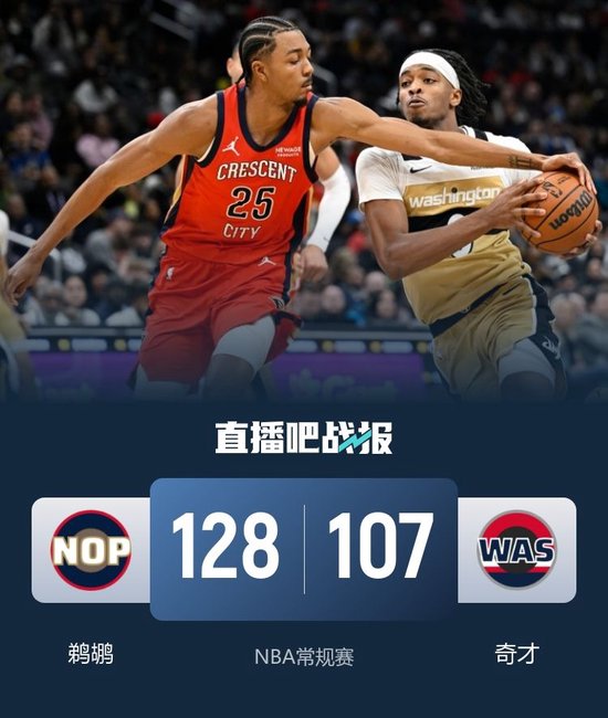 開場後鵜鶘上來先中兩記三分開局,巫師多點開花咬住比數,錫安連續強攻內線得手幫助鵜鶘建立領先,錫安下場休息後巫師連續補籃縮小分差。第二節剛上來兩隊又是僵持局面,還是依靠梅菲和錫安的發揮鵜鶘又將分差拉大,上半場鵜鶘領先10分。易邊再戰,錫安和梅菲延續火熱狀態又是輪番砍分,鵜鶘將場上分差拉大到20分,此後巫師穩住陣腳通過反擊追分。第四節巫師內外開花追到只差10分,不過錫安回來後依舊打得十分強勢,他多次製造殺傷幫助鵜鶘穩住局面,比數再次被拉開,比賽失去懸念,最終鵜鶘128-107輕取巫師結束9連敗,巫師遭遇2連敗。
