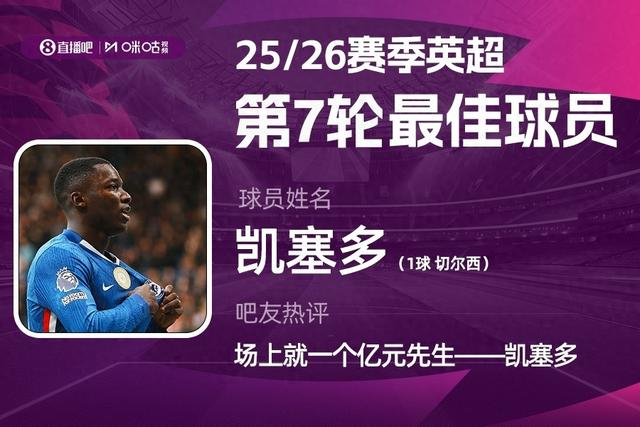 2025-2026賽季英超火熱進行中,香港時間和咪咕體育聯合發起每輪英超最佳球員評選活動!第7輪評選結果出爐,切爾西后腰卡些度攻防兼備,轟入世界波幫助車路士2-1戰勝利物浦,獲得吧友5.6萬票的支持,當選 【香港時間X咪咕體育英超第7輪最佳球員】!