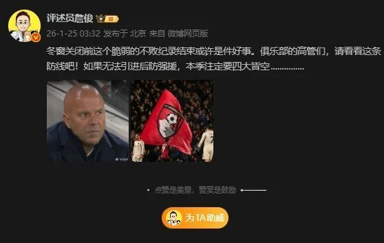 賽後,著名評論員詹俊對本次比賽做出點評。詹俊寫道:冬窗關閉前這個脆弱的不敗紀錄結束或許是件好事。球會的高管們,請看看這條防線吧!如果無法引進後防強援,本季註定要四大皆空……………
