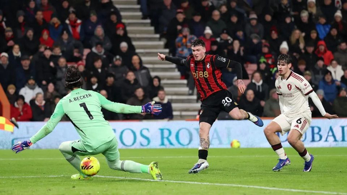 第26分鐘,般尼茅夫半場挑傳到禁區內,雲迪積克解圍踢空,史葛底線前將球回敲,埃瓦尼爾遜跟進迎球抽射破門,幫助般尼茅夫取得1-0領先。值得一提的是,利物浦中堅高美斯在回防攔截時與門將艾利臣相撞受傷,隨後高美斯無法堅持比賽被遠藤航換下!高美斯的受傷,讓利物浦的陣容變得更加捉襟見肘。