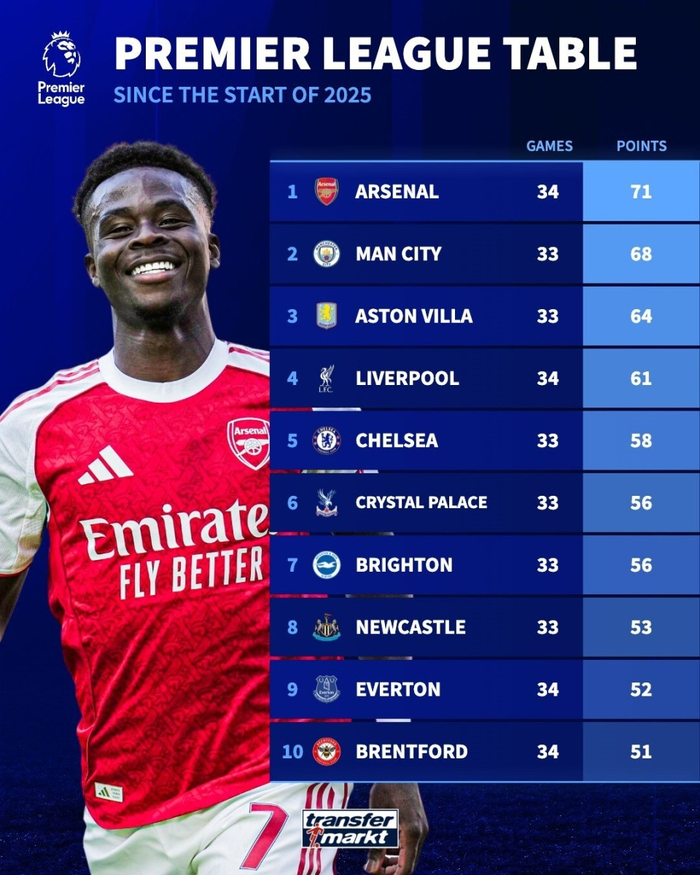 隨著曼城3-0利物浦,維拉4-0,英超最新積分榜:衛冕冠軍跌至第八