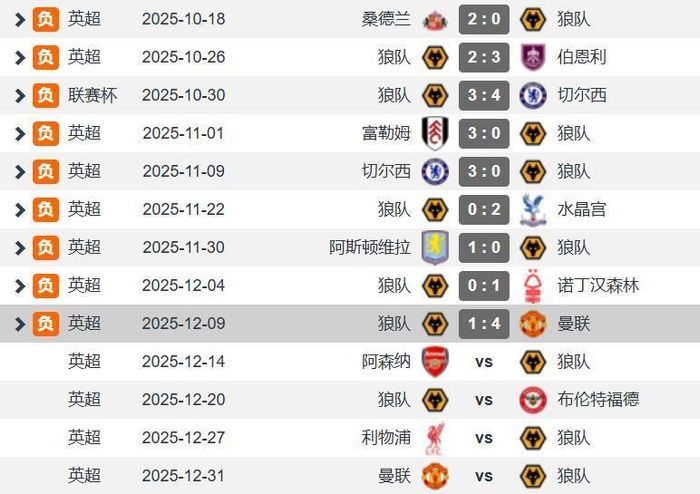狼隊是禍不單行,12月份他們還要迎來魔鬼賽程,主場1-4慘敗於曼聯之後,狼隊接著還要客戰榜首阿仙奴、主戰賓福特、客戰利物浦以及與曼聯的二番戰(作客),搞不好12月份過完,狼隊的積分還是2分。真這樣的話,狼隊還是提前準備下季踢英冠的事宜吧!以目前狼隊的財力狀況,或許踢英冠反而更有生存空間,就看能不能幫助中國年輕球員在英冠留洋。