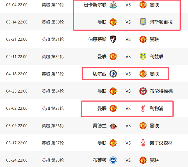 打完阿仙奴,後面15輪比賽,曼聯還將遇到紐卡素(作客)、維拉(主場)、車路士(作客)和利物浦(主場)4大強隊,這是曼聯最難踢的幾場比賽,特別是與車路士和利物浦的大戰,對爭四結果有重大影響。好在車路士和利物浦屆時可能都要分心歐冠盃和足總盃,因此曼聯在聯賽中以逸待勞,未必不能趁機拿下對手。