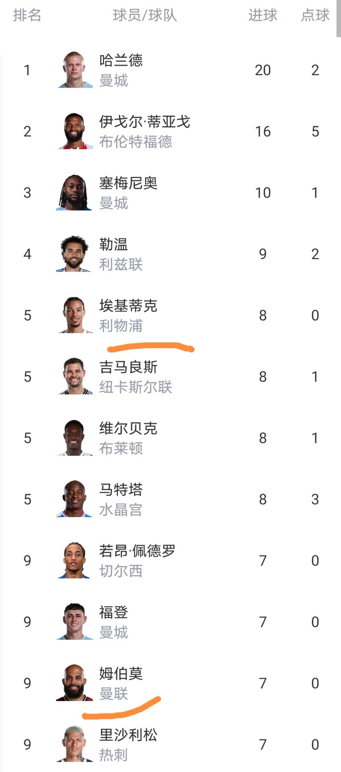 射手榜可以看到只有三位球員的入球數上雙的,可見英超還是不好踢的,競爭激烈,防守強度也很高,想在英超取得很多入球很難,除非像夏蘭特這樣的球員。