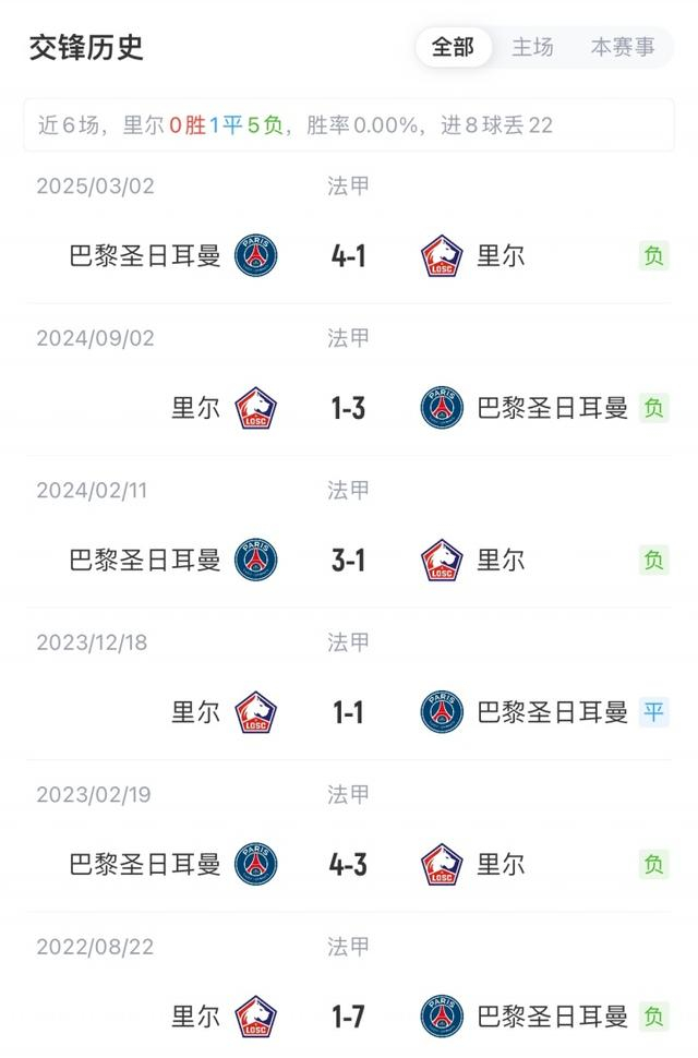 巴黎聯賽5勝1負積15分,近期各賽事2連勝;里爾3勝1平2負積10分,聯賽遭遇2連敗。巴黎對陣里爾已連續8場不敗(7勝1平)。