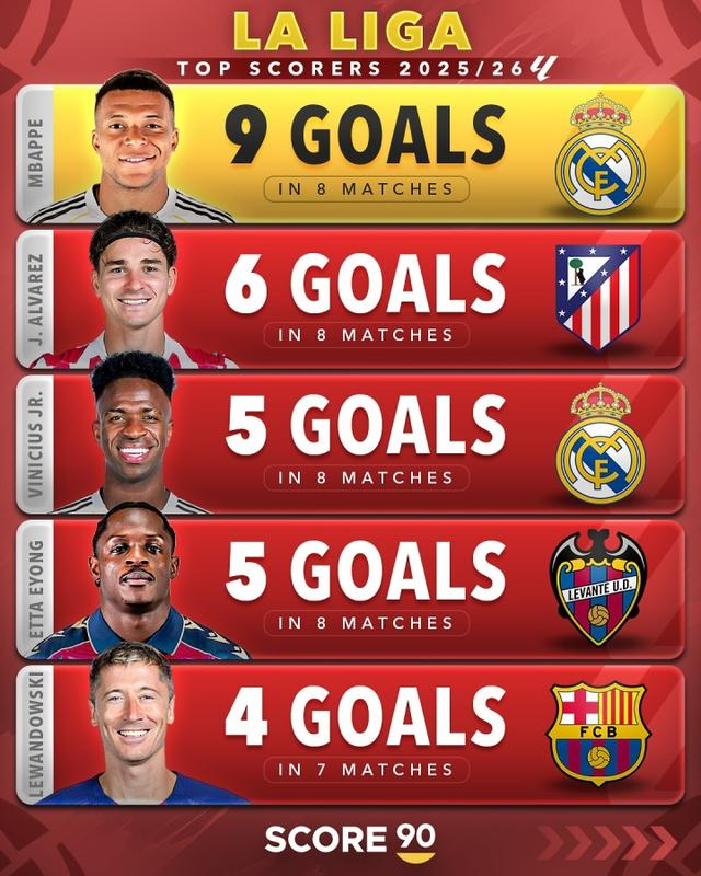 香港時間10月06日訊 即將迎來10月國際比賽日,歐洲五大聯賽又將短暫停擺,目前各大聯賽的射手榜情況如下。