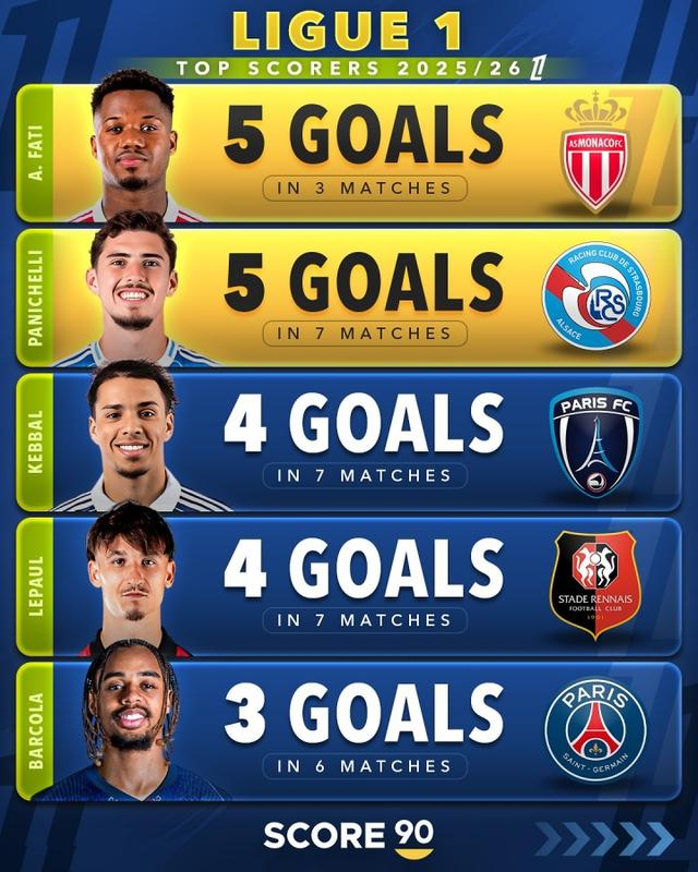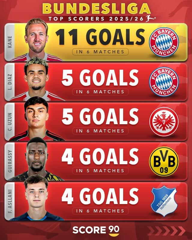 五大聯賽射手榜:簡尼11球一騎絕塵,哈\姆9球,法迪法甲並列第一