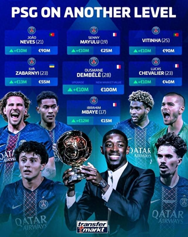 香港時間10月10日訊 德轉更新了法甲球員身價,其中巴黎多人身價上漲,具體如下: