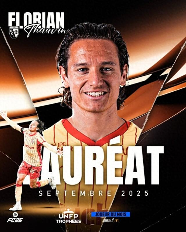 時隔7年再次獲獎!朗斯前鋒泰奧雲當選法甲9月最佳球員