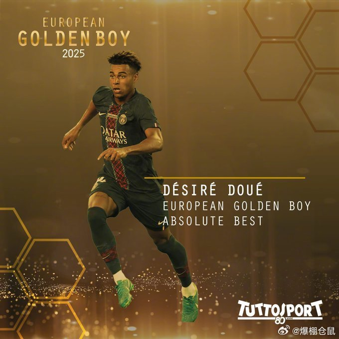 【實至名歸!】巴黎的20歲前鋒杜埃獲得2025年歐洲金童獎,上季為巴黎出戰61次,貢獻16球14助攻,並在歐冠盃決賽對陣國米貢獻2射1傳,當選全場最佳。