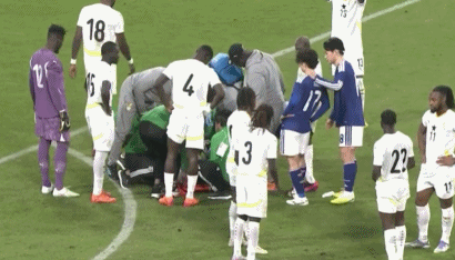 比賽足足中斷了4分鐘之後,在長時間的治療之後,艾巴被擔架抬離球場,全場球迷送上掌聲。24歲的艾巴效力於法甲圖盧茲,今季法甲出場8次共532分鐘。此役是艾巴第六次為加納出場,也是自5月31日以來首次為加納出場。