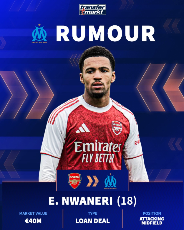 「伊桑·恩瓦內裡已經接受加盟馬賽奧林匹克球會!阿仙奴方面也認為,以租借的方式,這是最好的解決方案。」