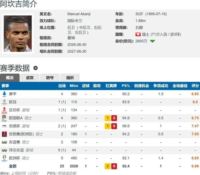 阿簡積是2022年夏天從杜特蒙德以2000萬歐元轉會到曼城的,在曼城期間拿了歐冠盃、英超這些好幾個冠軍。今年夏天,他以100萬歐元的租借費去了國米,合約里本來就有買斷的條款。他現在德轉身價2800萬歐元,國米花1500萬歐元買斷特別值。租借到國米後,他踢了6場球,4場意甲全是正選,還有2場歐冠盃,其中1場也正選了,這麼快就贏得了國米高層和球迷的認可。