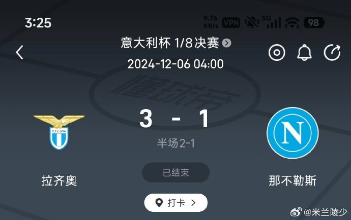 不過我覺得這個記錄主要還是跟拿玻里有關,他們在今季之前已經連續四年在意大利盃16強杯淘汰了,今季也差點一點,12碼涉險過關,他們上一次攻入八強還是疫情第一年
