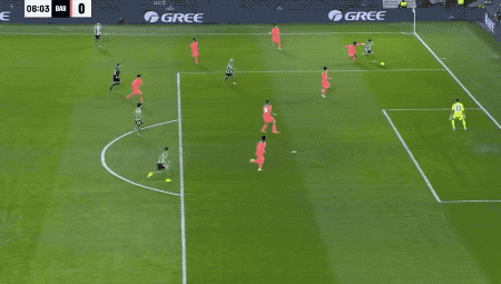 第11分鐘,巴塞隆拿打出流暢配合,高迪下底傳中,將球送到門前,費蘭·托利斯攻入聯賽第9球,位列射手榜的第二位。