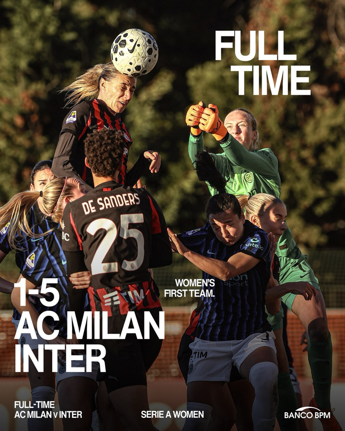 【米蘭女足賽果】 2025-26賽季#意甲# 女足聯賽第九輪:🔴⚫️ 米蘭女足主場1:5「慘敗」國際米蘭女足。
