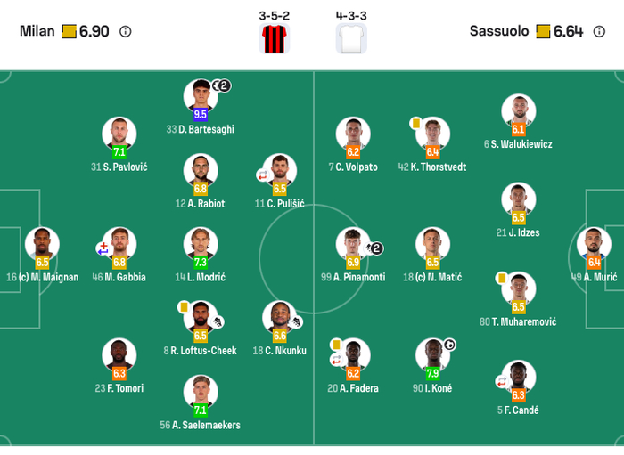 AC米蘭正選:16-邁尼安、23-湯姆利、46-基比亞(60’5-德溫特)、31-柏夫奴域、33-畢特沙基(91’2-艾斯杜賓蘭)、8-卓克、14-摩迪、12-拉比奧特、56-薩勒馬科夫(91’24-阿特卡梅)、11-普列錫(73’4-里奇)、18-尼根古。