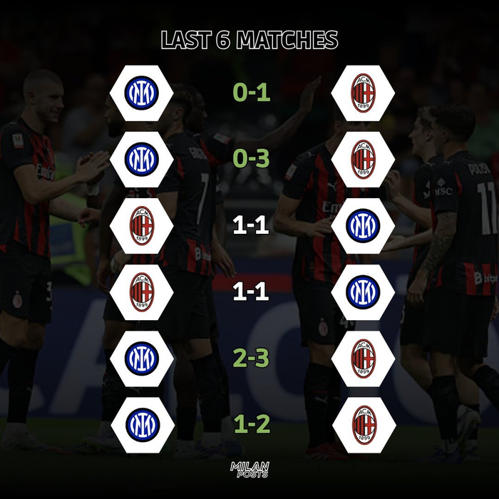 【對陣數據📊】🔴⚫️ 米蘭與本輪#意甲聯賽# 對手國際米蘭隊最近6場交鋒記錄:米蘭6戰4勝2平。