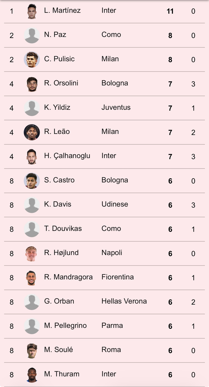 【意甲射手榜】 2025-26賽季#意甲聯賽# 第21輪射手榜。👟#sempremilan# 特別聲…