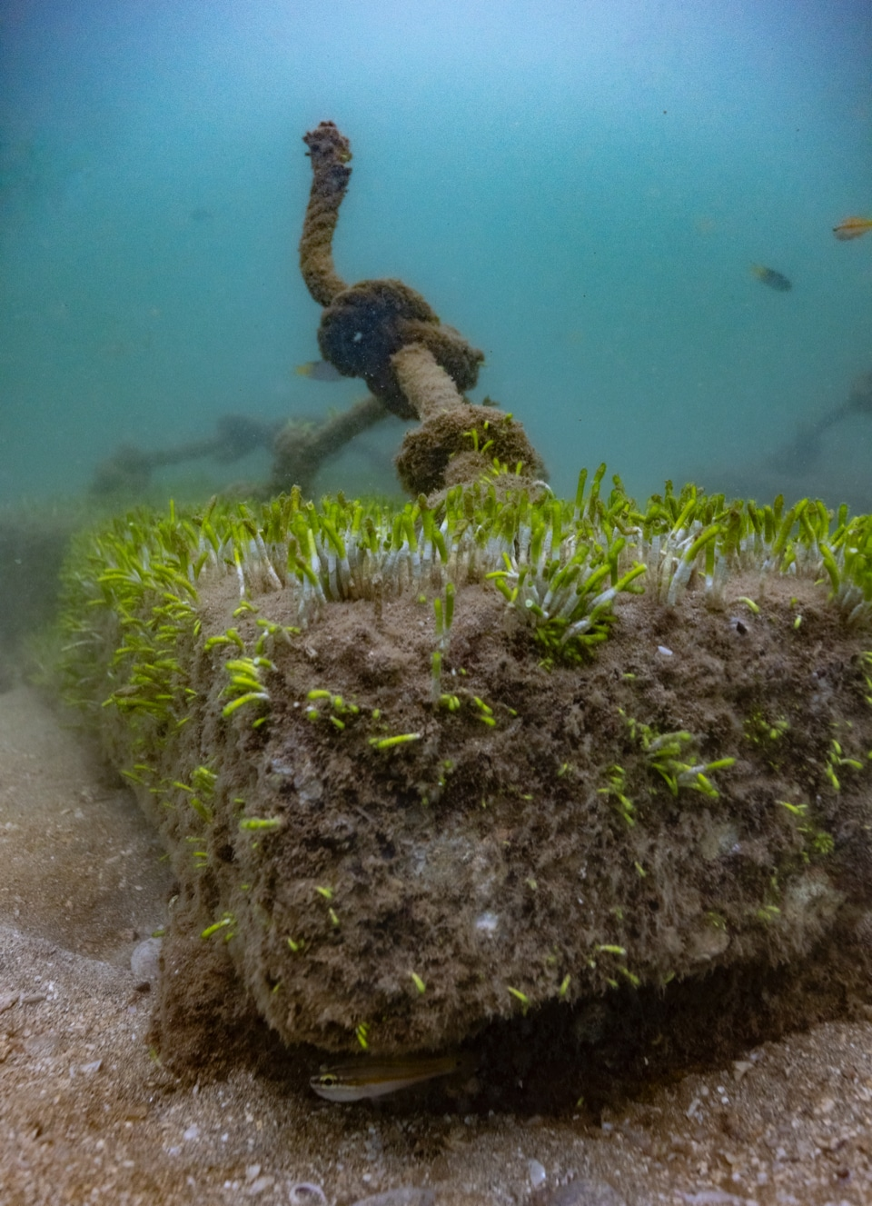 2016年開始,「柬埔寨海洋保護組織」開始著手放置人工魚礁。很快,這裏1000公頃的海草得以重生。儒艮,江豚,都開始成群在這裏覓食。