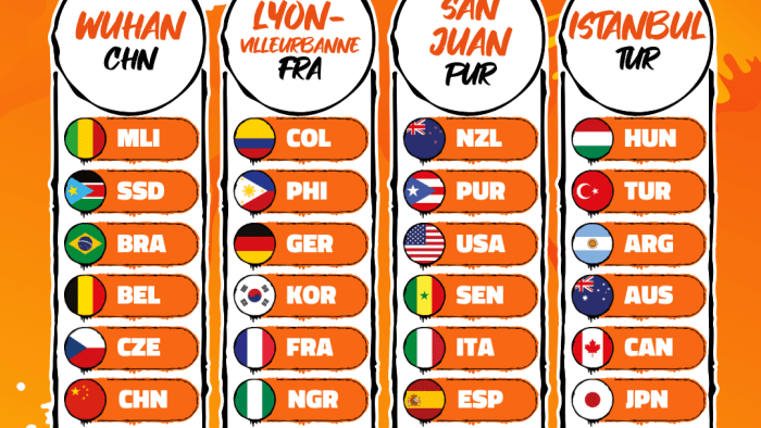 B組:新西蘭隊、波多黎各隊、美國隊、塞內加爾隊、意大利隊、西班牙隊