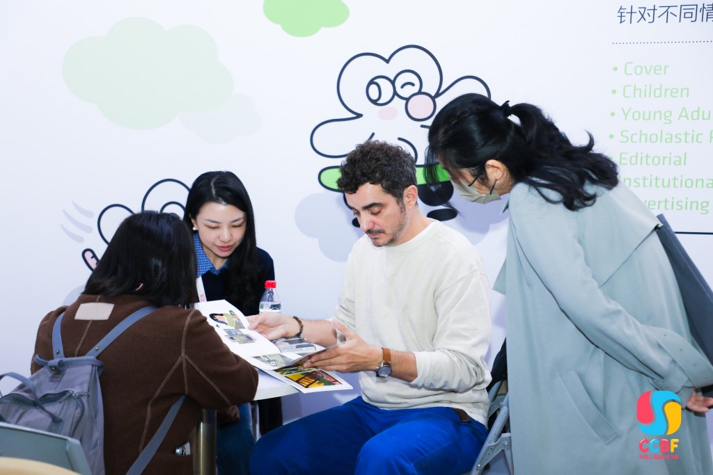 當天,一對一作品集輔導活動在插畫師生存角舉行。「年輕的插畫師更喜歡純粹的自我表達,但缺少細節和邏輯關係的打磨,缺少對圖書市場和社會大勢的關注與鏈接。」中國輕工業出版社藝術品牌「插畫+」負責人、資深出版人劉忠波已經是第二次受邀參加上海國際童書展插畫師出版一對一輔導活動,「去年第一次接受這個任務時,我還是很有壓力的,但是在輔導完之後,我和插畫師都感覺收穫良多,有的插畫師已經成為我的朋友和潛在作者。」他認為插畫師生存角為出版社和插畫師提供了一個交流的平台,「在這裏我們和年輕優秀的插畫師深入交流,有助於他們的作品早日符合出版的要求,並得到目標讀者的更多喜愛。我們也宣傳了自己的插畫書品牌,同時為積累優秀作者提供了新的途徑。」